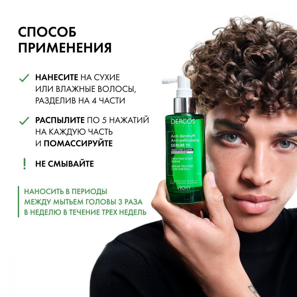 Интенсивная сыворотка VICHY DERCOS ANTI-DANDRUFF SERUM действует на 10 проблем кожи головы, которые могут быть связаны с перхотью.