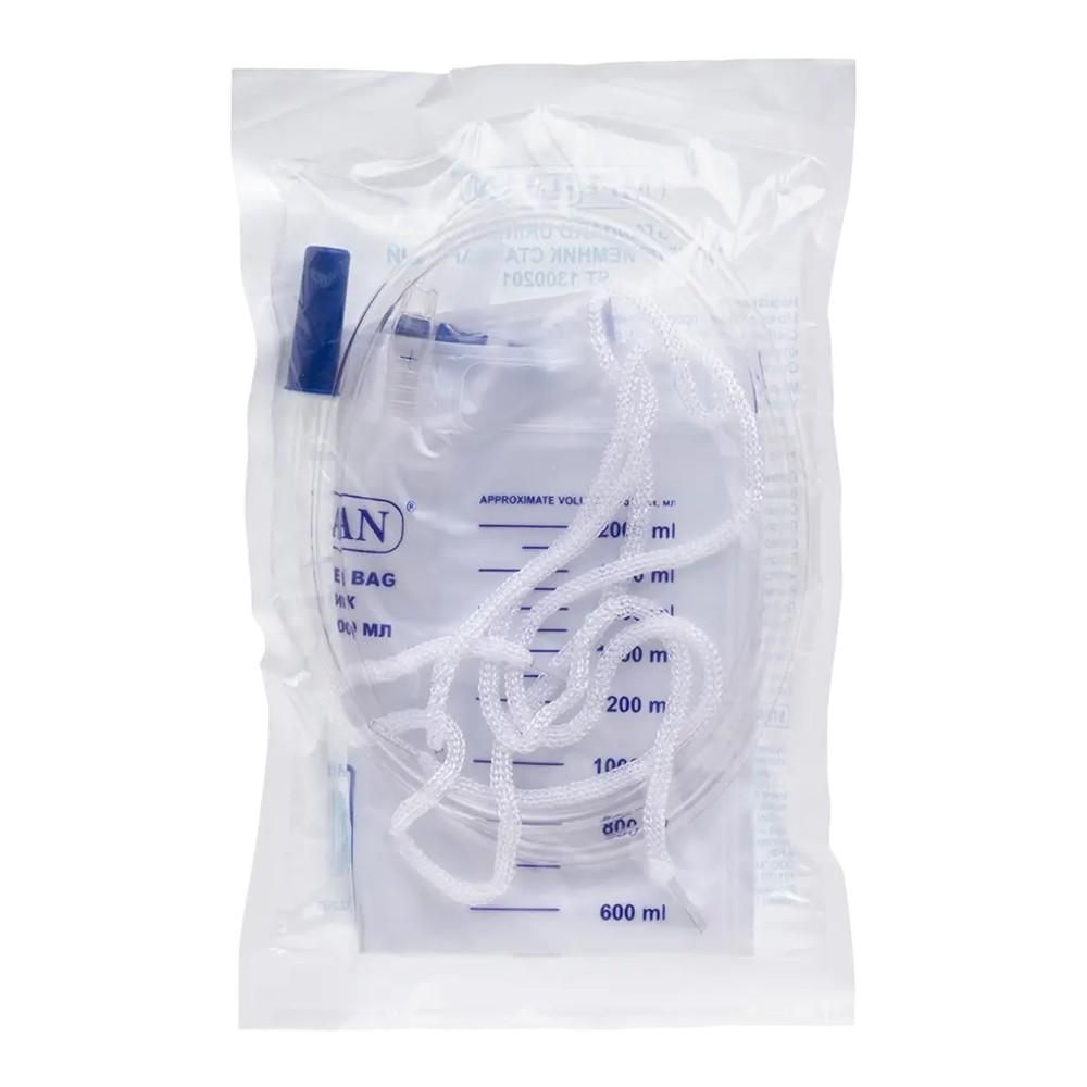 Невозвратный клапан против обратного тока мочиКрестообразный сливной клапанФиксирующие ленты для крепления к кроватиДлина трубки – 90 смОдноразовый, стерильный, изготовлен из поливинилхлоридаОбъем 2000млИмеет дополнительные отверстия для возможности крепления к ноге