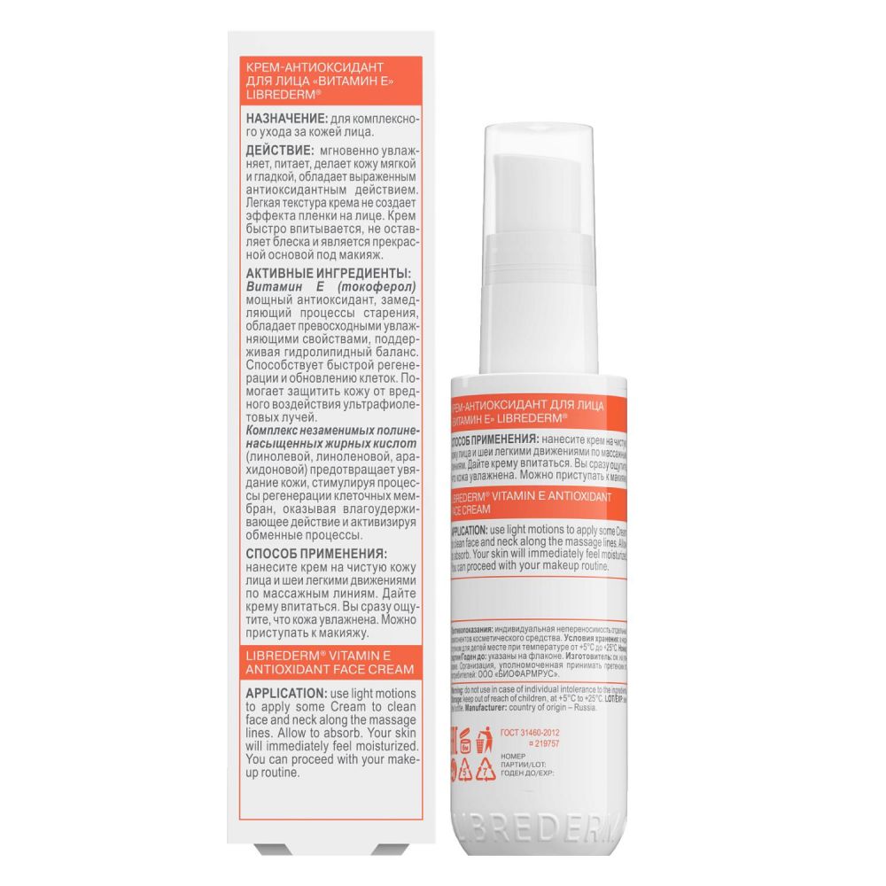 Libriderm (Либридерм) витамин е крем-антиоксидант для лица 50мл Биофармлаб ооо в Екатеринбурге