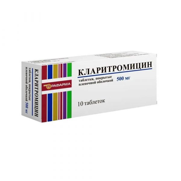 Кларитромицин 500мг таб.п/об. №10 Рафарма зао в Екатеринбурге