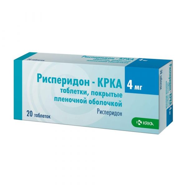 Взаимодействия, связанные с фармакодинамикой препарата Препараты, удлиняющие интервал QT Как и в случае с другими антипсихотическими препаратами, следует соблюдать осторожность при одновременном применении препарата Рисперидон - КРКА с препаратами, удлиняющими интервал QT, например, с антиаритмическими средствами (хинидин, дизопирамид, прокаинамид, пропафенон, амиодарон, соталол и др.), трициклическими антидепрессантами (амитриптилин и др.), тетрациклическими антидепрессантами (мапротилин и др.), некоторыми антигистаминными препаратами, прочими антипсихотическими средствами, некоторыми противомалярийными препаратами (хинин, мефлохин и др.), препаратами, вызывающими электролитный дисбаланс (гипокалиемия, гипомагниемия), брадикардию или ингибирующими печеночный метаболизм рисперидона. Данный перечень не является исчерпывающим. Препараты центрального действия и алкоголь Препарат Рисперидон - КРКА следует применять с осторожностью в сочетании с другими препаратами и веществами центрального действия, особенно с алкоголем, опиатами, антигистаминными препаратами и бензодиазепинами из-за повышенного риска седации. Леводопа и агонисты дофаминовых рецепторов Препарат Рисперидон - КРКА может снижать эффективность леводопы и других агонистов дофаминовых рецепторов. В случае если необходим прием данной комбинации, особенно в терминальной стадии болезни Паркинсона, следует назначать наименьшую эффективную дозу каждого из препаратов. Гипотензивные препараты При применении рисперидона одновременно с гипотензивными препаратами в пострегистрационном периоде наблюдалась клинически значимая артериальная гипотензия. Палиперидон Не рекомендуется одновременно применять препарат Рисперидон - КРКА и палиперидон, поскольку палиперидон является активным метаболитом рисперидона. Одновременное применение комбинации рисперидона и палиперидона может приводить к повышению концентрации активной антипсихотической фракции. Взаимодействия, связанные с фармакокинетикой препарата Прием пищи не оказывает влияния на абсорбцию рисперидона. Рисперидон в основном метаболизируется изоферментом CYP2D6 и, в меньшей степени, изоферментом CYP3A4. Рисперидон и его активный метаболит 9-гидроксирисперидон являются субстратами P-гликопротеина (P-gp). Препараты, влияющие на активность изофермента CYP2D6, и препараты, в значительной степени ингибирующие или индуцирующие активность изофермента CYP3A4 и/или P-gp, могут оказывать влияние на фармакокинетику активной антипсихотической фракции рисперидона. Мощные ингибиторы изофермента CYP2D6 При одновременном применении рисперидона и мощных ингибиторов изофермента CYP2D6 может повышаться плазменная концентрация рисперидона и, в меньшей степени, активной антипсихотической фракции. Более высокие дозы мощного ингибитора изофермента CYP2D6 могут повышать концентрацию активной антипсихотической фракции рисперидона (например, пароксетин (см. ниже)). Ожидается, что другие ингибиторы изофермента CYP2D6, такие как хинидин, могут оказывать подобное влияние на концентрацию рисперидона в плазме крови. При инициации или отмене терапии комбинацией рисперидона и пароксетина, хинидина или другого мощного ингибитора изофермента CYP2D6, особенно в более высоких дозах, следует скорректировать дозу препарата Рисперидон - КРК