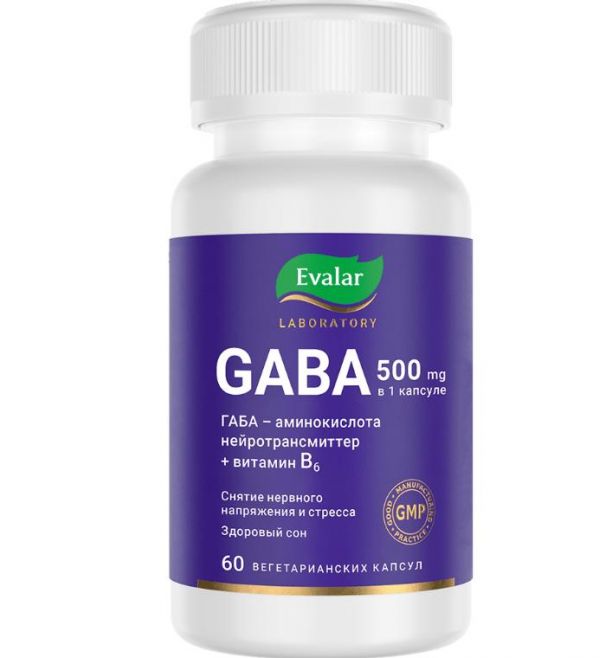 3 капсулы препарата GABA от Evalar Laboratory содержат оптимальное количество гамма- аминомасляной кислоты 1500 мг, усиленной витамином B6.
