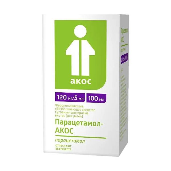Для приема внутрь. , Не превышайте указанную дозу. , Следует применять наименьшую дозу, необходимую для достижения эффекта, в течение максимально короткого периода времени. , Минимальный интервал между приемами препарата Парацетамол-АКОС должен составлять не менее 4 ч. , Перед применением содержимое флакона необходимо хорошо взболтать в течение не менее 10 сек. , Для удобства и точности дозирования рекомендуем пользоваться двусторонней ложкой: , большая ложка содержит 5 мл (120 мг парацетамола), маленькая – 2,5 мл (60 мг парацетамола). , Доза препарата зависит от возраста и массы тела ребенка. , Дети в возрасте от 3 мес. до 12 лет , Разовая доза препарата – 10–15 мг/кг массы тела. Максимальная суточная доза – не более 60 мг/кг массы тела при приеме отдельными разовыми дозами по 10–15 мг/кг массы тела в течение 24 ч., Не давайте ребенку более 4 доз в течение 24 ч., Режим дозирования:, Масса тела, кг / Возраст / Доза Разовая / Доза Суточная, 5–6 / 3–6 месяцев / 3 мл (72 мг) / 12 мл (288 мг), 7–8 / 3–6 месяцев / 4 мл (96 мг) / 16 мл (384 мг), 9–10 / 6–12 месяцев / 5 мл (120 мг) / 20 мл (480 мг), 11–13 / 1–2 года / 6 мл (144 мг) / 24 мл (576 мг), 14–16 / 2–3 года / 8 мл (192 мг) / 32 мл (768 мг), 17–20 / 3–6 лет / 10 мл (240 мг) / 40 мл (960 мг), 21–25 / 6–12 лет / 13 мл (312 мг) / 52 мл (1248 мг), 26–33 / 6–12 лет / 16 мл (384 мг) / 64 мл (1536 мг), 34–40 / 6–12 лет / 20 мл (480мг) / 80 мл (1920 мг), Максимальная продолжительность применения без консультации врача – 3 дня. При необходимости продолжения приема препарата более 3 дней требуется консультация врача. , При случайном превышении рекомендованной дозы следует немедленно обратиться к врачу, даже если ребенок чувствует себя хорошо, так как существует риск развития серьезного поражения печени (см. раздел «Передозировка»). , Если при приеме препарата Парацетамол-АКОС состояние ребенка не улучшается, следует обратиться к врачу., Особые группы пациентов, Дети в возрасте от 2 до 3 мес., В целях симптоматического облегчения поствакцинальных реакций разовая доза составляет 10–15 мг/кг массы тела ребенка. Препарат Парацетамол-АКОС следует применять 1–2 раза в сутки с интервалом не менее 4 ч. Если после приема второй дозы препарата повышенная температура сохраняется, то следует обратиться к врачу. По всем другим показаниям применение препарата у пациентов данной возрастной категории возможно только по предписанию врача., Пациенты с нарушением функции почек, Перед применением препарата Парацетамол-АКОС пациентам с нарушением функции почек необходимо предварительно проконсультироваться с врачом., Ограничения, связанные с применением парацетамолсодержащих препаратов у пациентов с нарушением функции почек, преимущественно связаны с содержанием парацетамола в лекарственном препарате., Пациенты с нарушением функции печени, Перед применением препарата Парацетамол-АКОС пациентам с нарушением функции печени необходимо предварительно проконсультироваться с врачом. Ограничения, связанные с применением парацетамолсодержащих препаратов у пациентов с нарушением функции печени, преимущественно связаны с содержанием парацетамола в лекарственном препарате.