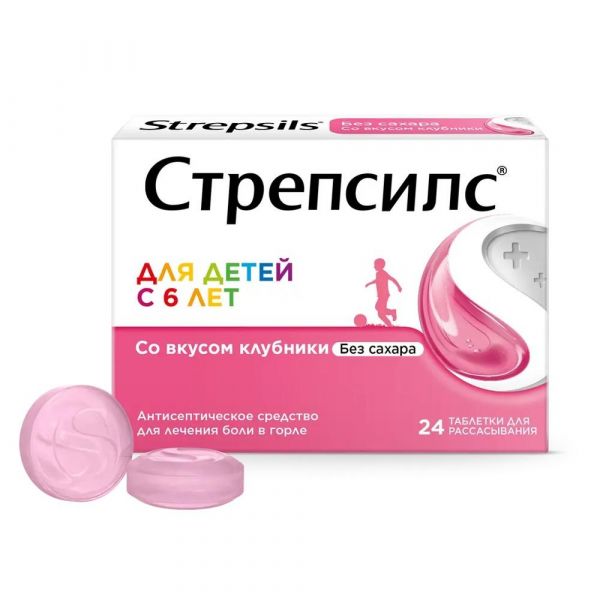 Стрепсилс таб.д/рассас. №24 клубника д/детей по цене от 344.95 руб в Екатеринбурге, купить Стрепсилс таб.д/рассас. №24 клубника д/детей (Reckitt benckiser healthcare international ltd.) в аптеке Фармленд, инструкция по применению, отзывы