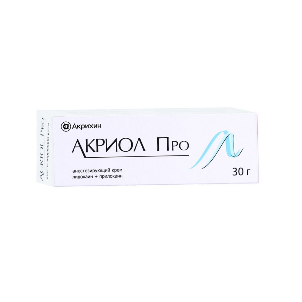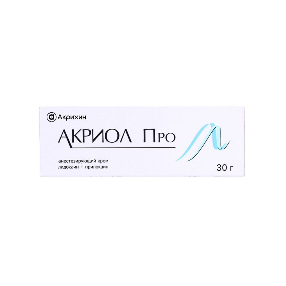 Наружно, на кожу или слизистую оболочку. Поверхностная анестезия интактной кожи Поверхностная анестезия трофических язв нижних конечностей При хирургической обработке (механической очистке) трофических язв нижних конечностей: разовая доза около 1-2 г/10 см2; нанести крем толстым слоем на язвенную поверхность, не более 10 г крема за процедуру. Наложить окклюзионную повязку. Время аппликации: минимум 30 мин. Вскрытая туба с кремом предназначена для однократного использования, тубу с остатками крема следует выбрасывать после использования у одного пациента. В случае обработки язв, в ткани которых проникновение препарата затруднено, продолжительность аппликации можно увеличить до 60 мин. Механическую очистку необходимо начинать не позднее 10 мин после удаления крема. При манипуляциях на язвах нижних конечностей препарат применяли до 15 раз в течение 1-2 месяцев без снижения эффективности и повышения частоты развития местных реакций. Поверхностная анестезия половых органов Кожа половых органов: Обезболивание перед инъекциями местных анестетиков: Мужчины: 1 г/10 см2. Нанести крем толстым слоем на кожу. Время аппликации: 15 мин. Женщины: 1-2 г/10 см2. Нанести крем толстым слоем на кожу. Время аппликации: 60 мин. Поверхностная анестезия слизистой оболочки половых органов: При удалении кондилом и для обезболивания перед инъекциями местных анестетиков: примерно 5-10 г крема, в зависимости от площади обрабатываемой поверхности. Крем следует наносить на всю поверхность слизистой оболочки, включая складки слизистой оболочки. Окклюзионной повязки не требуется. Время аппликации: 5-10 мин. Проводить процедуру сразу же после удаления крема. Дети Обезболивание при введении иглы (в т.ч. при вакцинации), при выскабливании контагиозного моллюска и при других небольших поверхностных хирургических манипуляциях. Нанести крем толстым слоем на кожу и покрыть окклюзионной повязкой. Доза должна соответствовать обрабатываемой поверхности и не должна превышать 1 г крема на 10 см2. Полоска препарата Акриол Про длиной 3,5 см примерно соответствует дозе 1 г. Увеличение времени аппликации уменьшает анестезию. У детей с атопическим дерматитом время аппликации следует уменьшить до 30 минут. Нанести крем толстым слоем на кожу и покрыть окклюзионной повязкой. Рекомендации по нанесению препарата Проткните защитную мембрану алюминиевой тубы, используя навинчиваемую крышку, выдавите из тубы достаточное количество крема и нанесите на место предполагаемой процедуры. При анестезии кожных покровов возможно применение окклюзионных наклеек. При анестезии трофических язв нижних конечностей используйте окклюзионную повязку из ПВХ. Прикройте повязкой нанесенный крем таким образом, чтобы слой крема под ней был толстым и не выдавливался из-под повязки. Аккуратно разгладьте края повязки, чтобы избежать подтекания крема. По истечении рекомендованного времени удалите повязку и остатки крема с поверхности.