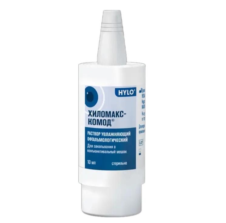 Рекомендуется закапывать раствор ХИЛОМАКС-КОМОД® 3 раза в день в конъюнктивальный мешок каждого глаза по 1 капле. При необходимости раствор ХИЛОМАКС-КОМОД® можно закапывать чаще., Частота закапывания раствора ХИЛОМАКС-КОМОД® устанавливается индивидуально в зависимости от Ваших ощущений и согласно рекомендациям врача-офтальмолога или специалиста по контактным линзам. Если Вы пользуетесь раствором ХИЛОМАКС- КОМОД® очень часто (например, более 10 раз в день), пожалуйста, проконсультируйтесь с врачом-офтальмологом. В случае, если после применения раствора ХИЛОМАКС-КОМОД® в течение нескольких дней предъявляемые Вами жалобы или дискомфорт сохраняются, Вам следует также проконсультироваться с врачом-офтальмологом., Система КОМОД® содержит и позволяет извлечь 10 мл раствора ХИЛОМАКС-КОМОД®, что соответствует примерно 300 каплям раствора., После полного использования содержимого следует приобрести новый заполненный контейнер с раствором ХИЛОМАКС-КОМОД®, так как система не предусмотрена для повторного использования., Не существует ограничений в отношении длительности применения раствора ХИЛОМАКС- КОМОД®., Способ применения и рекомендации при ношении контактных линз, Перед каждым закапыванием нужно снимать колпачок., Пожалуйста, перед первым использованием раствора ХИЛОМАКС-КОМОД® переверните контейнер капельницей вниз и надавите на его основание несколько раз, пока на кончике капельницы не появится первая капля. После этого система готова к использованию., При закапывании раствора ХИЛОМАКС-КОМОД® удерживайте контейнер капельницей вниз, быстро и энергично надавливая на его основание. Таким образом приводится в действие механизм капельницы и извлекается только одна капля раствора. Благодаря особой конструкции клапанов в системе КОМОД® размер капли и скорость ее извлечения остаются одинаковыми даже при очень сильном давлении на основание контейнера., Откиньте голову немного назад, слегка отведите пальцем нижнее веко и закапайте одну каплю в конъюнктивальный мешок, как описано выше. Медленно закройте глаза, давая возможность жидкости равномерно распределиться по поверхности глаза., После окончания процедуры герметично наденьте на капельницу колпачок., При закапывании следует избегать контактов кончика капельницы с поверхностью глаза и кожей., При ношении мягких и жестких контактных линз возможно закапывание раствора ХИЛОМАКС-КОМОД® в конъюнктивальный мешок без снятия линз., Система КОМОД® предусмотрена только для индивидуального использования.