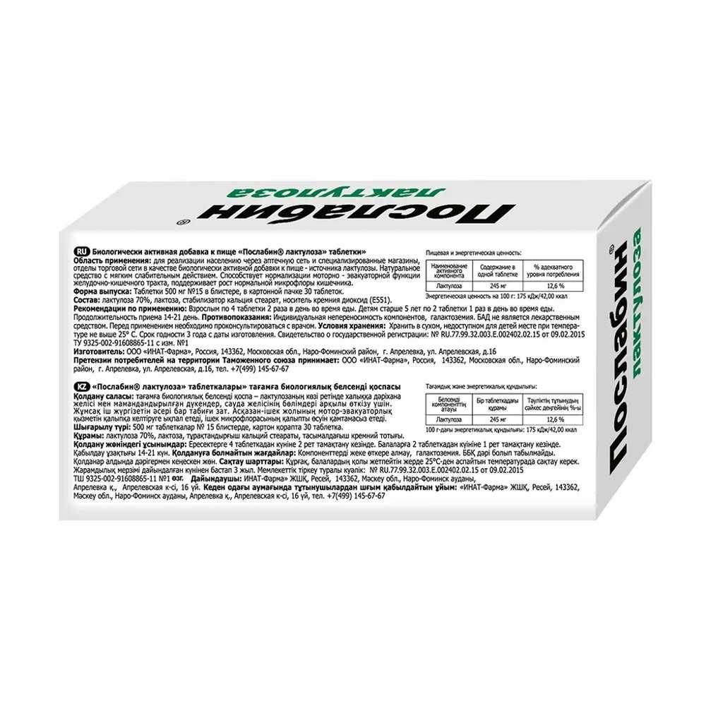 Послабин лактулоза 500мг таб. №30 Инат фарма пп ооо в Екатеринбурге