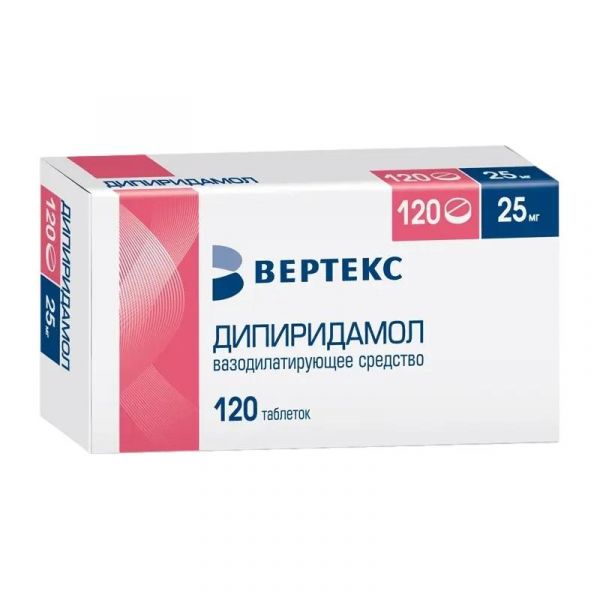 Дипиридамол 25мг таб.п/об.пл. №120 (Вертекс ао) - цены в Екатеринбурге, купить Дипиридамол 25мг таб.п/об.пл. №120 в аптеке Фармленд, инструкция по применению, отзывы