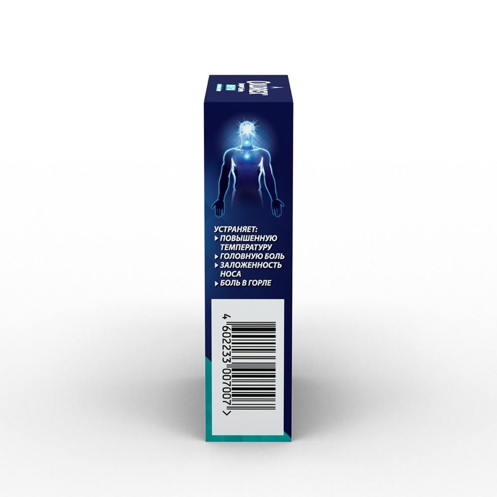В рекомендованных дозах препарат обычно хорошо переносится. Нижеперечисленные нежелательные реакции выявлены спонтанно в ходе пострегистрационного применения препарата. Нежелательные реакции классифицированы по системам организма и в соответствии с частотой развития. Частота развития нежелательных реакций определяется следующим образом: очень часто (≥ 1/10), часто (≥ 1/100 и <1/10), нечасто (≥ 1/1000 и <1/100), редко (≥ 1/10 000 и <1/1000), очень редко (<10 000), частота неизвестна (частота не может быть оценена, исходя из имеющихся данных). Парацетамол Парацетамол редко оказывает побочное действие. Нарушения со стороны крови и лимфатической системы Очень редко: тромбоцитопения, лейкопения, агранулоцитоз. Нарушения со стороны иммунной системы Очень редко: анафилактический шок, кожные реакции гиперчувствительности, включая кожную сыпь, крапивницу, ангионевротический отек (отек Квинке), синдром Стивенса- Джонсона, токсический эпидермальный некролиз (синдром Лайелла). Частота неизвестна: острый генерализованный экзантематозный пустулез. Нарушения со стороны дыхательной системы, органов грудной клетки и средостения Очень редко: бронхоспазм у пациентов с повышенной чувствительностью к ацетилсалициловой кислоте и другим нестероидным противовоспалительным средствам. Нарушения со стороны печени и желчевыводящих путей Очень редко: нарушения функции печени. Частота неизвестна: повышение активности печеночных ферментов. Нарушения со стороны почек и мочевыводящих путей При длительном применении препарата в дозах, превышающих рекомендованную, повышается вероятность нефротоксического действия. Фенилэфрин Нарушения со стороны иммунной системы Редко: аллергические реакции (крапивница, аллергический дерматит). Реакции гиперчувствителыюсти, включая реакции перекрестной чувствительности к другим симпатомиметикам. Нарушения психики Часто: нервозность. Нарушения со стороны нервной системы Часто: головная боль, головокружение, бессонница, повышенная возбудимость. Нарушения со стороны органа зрения Редко: мидриаз, острый приступ закрытоугольной глаукомы в большинстве случаев у пациентов с закрытоугольной глаукомой. Нарушения со стороны сердечно-сосудистой системы Часто: повышение артериального давления. Редко: тахикардия, ощущение сердцебиения, которое проходит сразу после отмены препарата. Нарушение со стороны желудочно-кишечного тракта Часто: тошнота, рвота. Нарушения со стороны кожи и подкожных тканей Очень редко: сыпь. Нарушения со стороны почек и мочевыводящих путей Редко: дизурия, задержка мочеиспускания у пациентов с обструкцией выходного отверстия мочевого пузыря при гипертрофии предстательной железы. При возникновении любой из перечисленных нежелательных реакций немедленно прекратите прием препарата и как можно скорее обратитесь к врачу. Если любые из указанных в инструкции нежелательных реакций усугубляются или Вы заметили другие нежелательные реакции, не указанные в инструкции, сообщите об этом врачу.