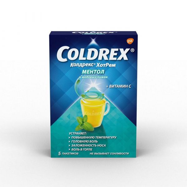 Колдрекс хотрем 6г пор.д/р-ра д/пр.внутр. №5 пак. ментол медовый лимон Smithkline beecham s.a. в Екатеринбурге