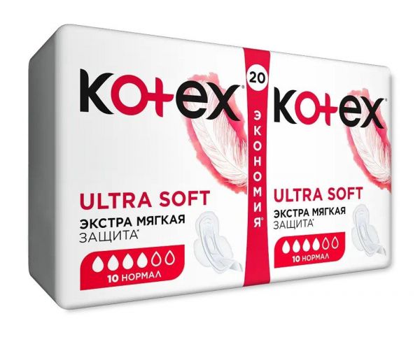 Kotex (Котекс) прокладки ультра №20 софт нормал дуо 9425926 (Kimberly-clark corp.) - цены в Екатеринбурге, купить Kotex (Котекс) прокладки ультра №20 софт нормал дуо 9425926 в аптеке Фармленд, инструкция по применению, отзывы