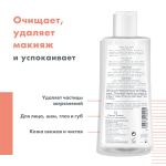 1. Мягко удаляет загрязнения и макияж с кожи лица, глаз и губ,не пересушивая кожу.