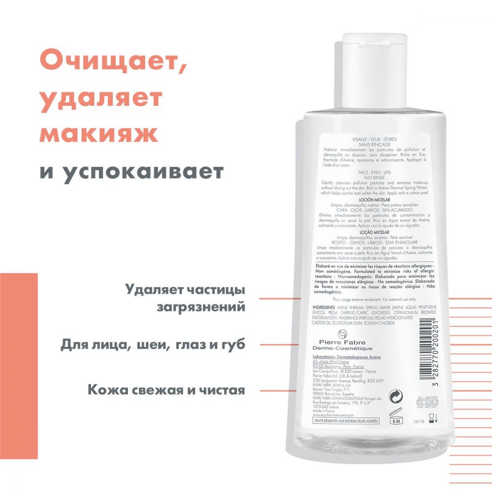 Avene (авен) лосьон очищающий мицеллярный 500мл 0201 Pierre fabre dermo-cosmetique в Екатеринбурге