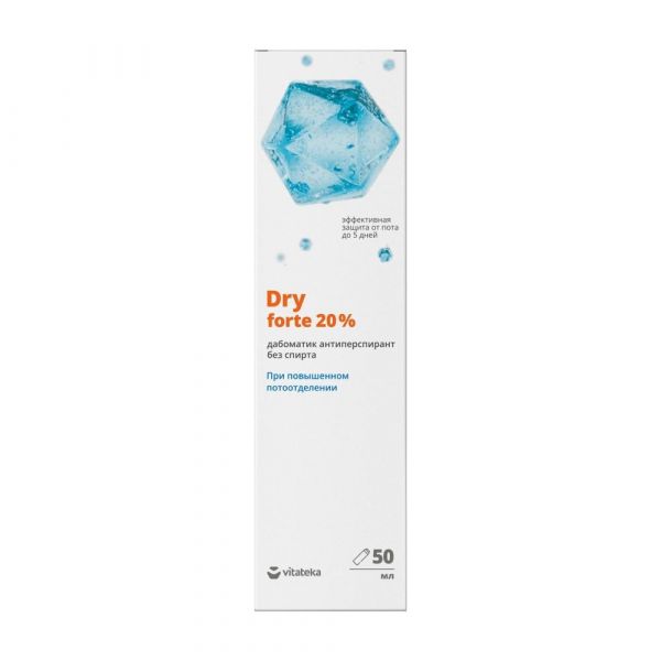 DRY vitateka - антиперспирант на водной основе, позволяет значительно снизить и при регулярном применении остановить избыточное потоотделение, обеспечивает эффективную защиту от пота до 5 дней. Антиперспирант DRY является безопасным и эффективным средством.