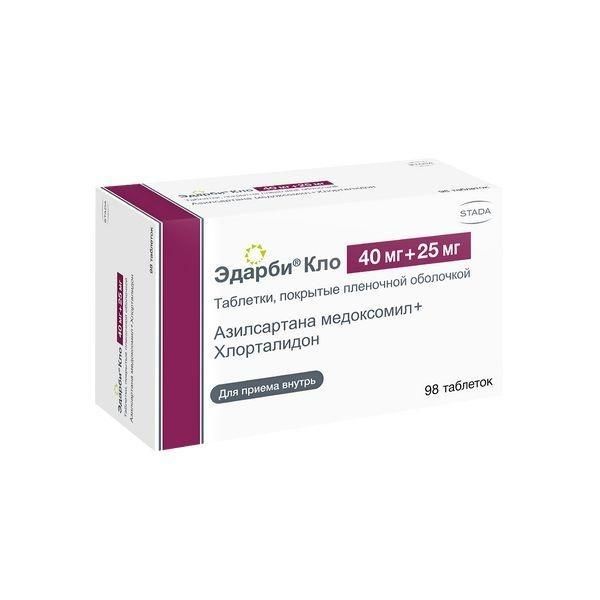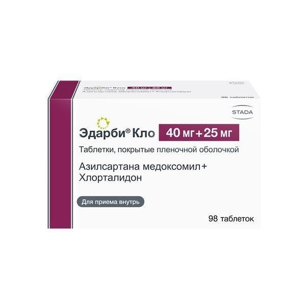 Цены на Эдарби кло 40мг+25мг таб.п/об.пл. №98 указаны в таблице ниже