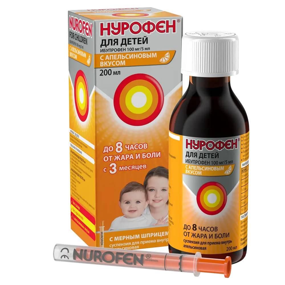 Нурофен® для детей – суспензия, специально разработанная для детей. Для приема внутрь. Пациентам с повышенной чувствительностью желудка рекомендуется принимать препарат во время еды., Только для кратковременного применения. Внимательно прочтите инструкцию перед приемом препарата., Перед употреблением тщательно взболтайте флакон. Для точного отмеривания дозы препарата прилагается удобный мерный шприц. 5 мл препарата содержат 100 мг ибупрофена или 20 мг ибупрофена в 1 мл., Использование мерного шприца:, Плотно вставьте мерный шприц в горлышко флакона. Переверните флакон вверх дном и плавно потяните поршень вниз, набирая суспензию в шприц до нужной отметки. Верните флакон в исходное положение и выньте шприц, аккуратно поворачивая его. Поместите шприц в ротовую полость и медленно нажимайте на поршень, плавно выпуская суспензию., После употребления промойте шприц в теплой воде и высушите его в недоступном для ребенка месте., Лихорадка (жар) и боль:, Дозировка для детей зависит от возраста и массы тела ребенка. Максимальная суточная доза не должна превышать 30 мг/кг массы тела ребенка c интервалами между приемами препарата 6-8 часов., Дети в возрасте 3-6 месяцев (вес ребенка от 5 до 7,6 кг): по 2,5 мл (50 мг) до 3 раз в течение 24 часов, не более 7,5 мл (150 мг) в сутки., Дети в возрасте 6-12 месяцев (вес ребенка 7,7 - 9 кг): по 2,5 мл (50 мг) до 3-4 раз в течение 24 часов, не более 10 мл (200 мг) в сутки., Дети в возрасте 1-3 года (вес ребенка 10 - 16 кг): по 5,0 мл (100 мг) до 3 раз в течение 24 часов, не более 15 мл (300 мг) в сутки., Дети в возрасте 4-6 лет (вес ребенка 17 - 20 кг): по 7,5 мл (150 мг) до 3 раз в течение 24 часов, не более 22,5 мл (450 мг) в сутки., Дети в возрасте 7-9 лет (вес ребенка 21 - 30 кг): по 10 мл (200 мг) до 3 раз в течение 24 часов, не более 30 мл (600 мг) в сутки., Дети в возрасте 10-12 лет (вес ребенка 31 - 40 кг): по 15 мл (300 мг) до 3 раз в течение 24 часов, не более 45 мл (900 мг) в сутки., Продолжительность лечения - не более 3 дней. Не превышайте указанную дозу., Если при приеме препарата в течение 24 часов (у детей в возрасте 3-5 месяцев) или в течение 3 дней (у детей в возрасте 6 месяцев и старше) симптомы сохраняются или усиливаются, необходимо прекратить лечение и обратиться к врачу., Постиммунизационная лихорадка:, Детям в возрасте до 6 месяцев: по 2,5 мл (50 мг) препарата. При необходимости, еще 2,5 мл (50 мг) через 6 часов. Не применяйте более 5 мл (100 мг) в течение 24 часов.