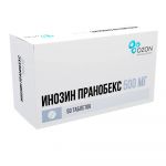 Фармакодинамика Инозин Пранобекс – синтетическое производное пурина, представляет собой комплекс содержащий инозин и N,N-диметиламино-2-пропанол в молярном соотношении 1:3. Обладает иммуностимулирующей активностью и неспецифическим противовирусным действием. Эффективность комплекса определяется присутствием инозина, второй компонент повышает его доступность для лимфоцитов. Восстанавливает функции лимфоцитов в условиях иммунодепрессии, повышает бластогенез в популяции моноцитов, стимулирует экспрессию мембранных рецепторов на поверхности Т-хелперов, предупреждает снижение активности лимфоцитов под влиянием глюкокортикостероидов, нормализует включение в них тимидина. Инозин пранобекс стимулирует активность Т-лимфоцитов и естественных киллеров, функции Т-супрессоров и Т-хелперов, повышает продукцию иммуноглобулина G (IgG), интерферона-гамма, интерлейкинов ИЛ-1 и ИЛ-2, снижает образование противовоспалительных цитокинов – ИЛ-4 и ИЛ-10, потенцирует хемотаксис нейтрофилов, моноцитов и макрофагов. Препарат проявляет противовирусную активность in vivo в отношении вируса простого герпеса, цитомегаловируса, вируса кори, вируса Т-клеточной лимфомы человека (тип III), полиовирусов, вирусов гриппа А и В, ЕСНО-вируса (энтероцитопатогенного вируса человека), вирусов энцефаломиокардита и конского энцефалита. Механизм противовирусного действия инозина пранобекса связан с ингибированием вирусной РНК и дигидроптероатсинтетазы, участвующей в репликации некоторых вирусов, усиливает подавленный вирусами синтез мРНК лимфоцитов, что сопровождается уменьшением синтеза вирусной РНК и трансляции вирусных белков, повышает продукцию лимфоцитами обладающих противовирусными свойствами альфа и гамма интерферонов. При комбинированном назначении усиливает действие интерферона-альфа, ацикловира и зидовудина. Фармакокинетика После приема внутрь препарат хорошо всасывается из желудочно-кишечного тракта (ЖКТ). Максимальная концентрация действующего вещества в плазме крови определяется через 1-2 ч. Быстро подвергается метаболизму и выделяется через почки. Метаболизируется аналогично эндогенным пуриновым нуклеотидам с образованием мочевой кислоты. N,N-диметиламино-2-пропанол метаболизируется до N-оксида, а 4-ацетамидобензоат – до о-ацетилглюкуронида. Не обнаружено кумуляции препарата в организме. Период полувыведения (Т ) составляет 3,5 ч для N,N-диметиламино-2-пропанола и 50 мин – для 4-ацетамидобензоата. Препарат и его метаболиты из организма выводятся почками в течение 24-48 ч.