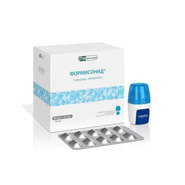 Указания по дозированию, Если симптомы бронхиальной астмы поддаются контролю, можно постепенно снижать дозу препарата Формисонид®, при этом важно постоянно следить за состоянием пациентов., Следует назначать наименьшую эффективную дозу препарата Формисонид® (см. раздел «Способ применения и дозы»)., Пациентам рекомендуется постоянно иметь при себе препараты неотложной помощи или Формисонид® (для пациентов с бронхиальной астмой, применяющих Формисонид® для купирования приступов/симптомов с противовоспалительным действием – терапия А или В), или бета2- адреномиметики короткого действия (для все пациентов, применяющих Формисонид® только для поддерживающей терапии – терапия С)., При применении препарата Формисонид® в качестве поддерживающей терапии следует обратить внимание пациента на необходимость регулярного приема поддерживающей дозы препарата в соответствии с подобранной терапией, даже в случаях отсутствия симптомов заболевания., Рекомендуется проинструктировать пациента о необходимости полоскать рот водой после ингаляций поддерживающих доз с целью предотвращения риска развития кандидоза слизистой оболочки полости рта и глотки. Также необходимо полоскать рот водой после проведения ингаляций по требованию в случае развития кандидоза слизистой оболочки полости рта и глотки., Рекомендуется постепенно уменьшать поддерживающую дозу препарата перед прекращением лечения и не рекомендуется резко отменять лечение. Не следует полностью отменять ингаляционные глюкокортикостероиды, за исключением случаев, когда временная отмена необходима для подтверждения диагноза бронхиальной астмы., Формисонид® 80 мкг + 4,5 мкг/доза не предназначены для лечения пациентов с бронхиальной астмой легкой и тяжелой степени., Усиление симптомов заболевания, Во время терапии препаратом Формисонид® могут отмечаться обострения и развитие серьезных нежелательных явлений, связанных с бронхиальной астмой. Пациентам следует продолжать лечение, но обратиться за медицинской помощью при отсутствии контроля над симптомами бронхиальной астмы или в случае ухудшения состояния после начала терапии., При недостаточной эффективности терапии или превышении максимальных рекомендуемых доз препарата Формисонид® необходимо пересмотреть тактику лечения. Неожиданное и прогрессирующее ухудшение контроля симптомов бронхиальной астмы или ХОБЛ является потенциально угрожающим для жизни состоянием и требует срочного медицинского вмешательства. В данной ситуации следует рассмотреть возможность повышения дозы глюкокортикостероидов, например, назначение курса пероральных глюкокортикостероидов, или лечения антибиотиками в случае присоединения инфекции. При тяжелом обострении монотерапии комбинированным препаратом ингаляционного глюкокортикостероида и бета2-адреномиметика длительного действия недостаточно., Перевод с пероральной терапии, Если есть основания полагать, что на фоне предшествующей системной терапии глюкокортикостероидами была нарушена функция надпочечников, следует принять меры предосторожности при переводе пациентов на лечение препаратом Формисонид®., Преимущества ингаляционной терапии будесонидом, как правило, сводят к минимуму необходимость приема пероральных глюкокортикостероидов, однако у пациентов, прекра