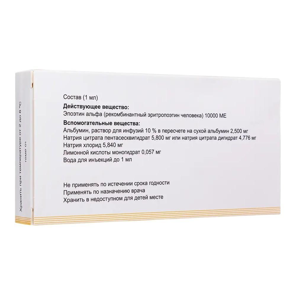 Эпоэтин альфа (рекомбинантный эритропоэтин человека - Рэпоэтин-СП) - 10000 МЕ;