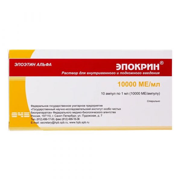 Эпокрин 10000ме 1мл р-р д/ин.в/в.,п/к. №10 амп. Госнии особо чистых биопрепаратов фмба фгуп_2 в Екатеринбурге