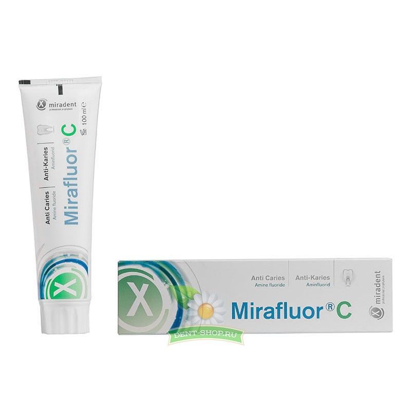 Аминофториды (AmF) в пасте Mirafluor® С (1.250 ppm) ведут к повышению концентрации фторидов в слюне, что препятствует возникновению кариеса. Благодаря химическим свойствам и поверхностной активности, аминофториды покрывают поверхность зубов ровным и однородным молекулярным слоем и показывают ускоренное распределение на поверхности зубов, улучшенное усваивание фторидов, оказывают антигликолитический эффект на зубной налет и, по сравнению с другими фторидными соединениями, обеспечивают депонирование фторидов на эмали. Консистенция плёнки предотвращает её быстрое вымывание.