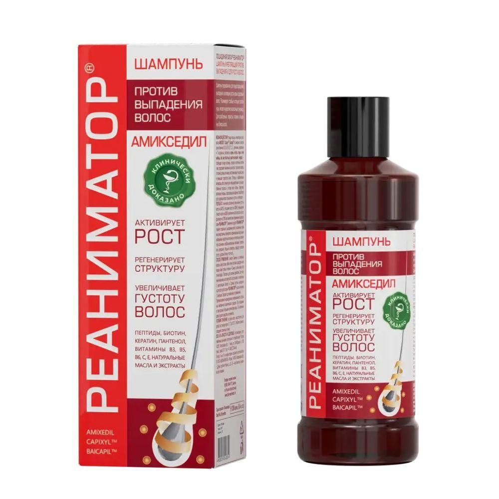 Единственная в России коллекция средств против выпадения волос после COVID-19 и перенесенных вирусных инфекций., Триада мощных активаторов роста волос Capixyl™, Baicapil™ и Caffeine в синергии с комплексом витаминов B3, B5, B6, B7, C, E, аргинином, кератином и 7 натуральных экстрактов: корень лопуха, перец чили, имбирь, лён, аир болотный, каштан конский и череда - пробуждают спящие луковицы, ускоряют клеточный метаболизм, продлевают жизненный цикл волос. Укрепляют волосы от корней до самых кончиков, восстанавливают по всей длине и уменьшают пористость волос., Пептиды и эффективные активаторы роста стимулируют микроциркуляцию и улучшают обменные процессы в клетках кожи головы. Укрепляют волосяные луковицы, предотвращая выпадение, способствуя росту здоровых волос, повышению, их густоты и плотности., РЕЗУЛЬТАТ: клинически доказанное увеличение густоты волос на 34,1%; утолщение волос на 39,4%; уменьшение тонкости волос на 43,6%; рост волос из одного фолликула на 17,9% при комплексном применении продуктов серии РЕАНИМАТОР®