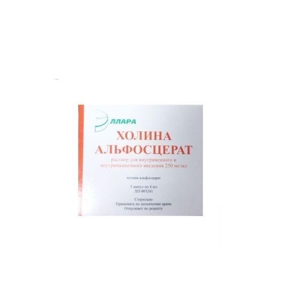 Холина альфосцерат 250мг/мл 4мл р-р д/ин.в/в.,в/м. №5 Эллара ооо в Екатеринбурге