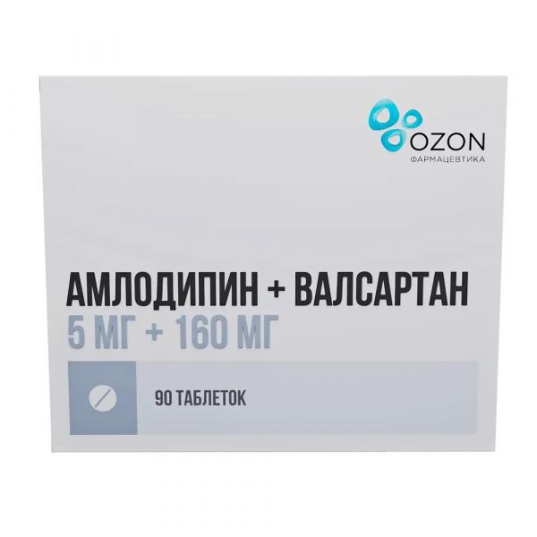 Амлодипин+валсартан 5мг+160мг таб.п/об.пл. №90 по цене от 1087.16 руб в Екатеринбурге, купить Амлодипин+валсартан 5мг+160мг таб.п/об.пл. №90 (Озон ооо) в аптеке Фармленд, инструкция по применению, отзывы
