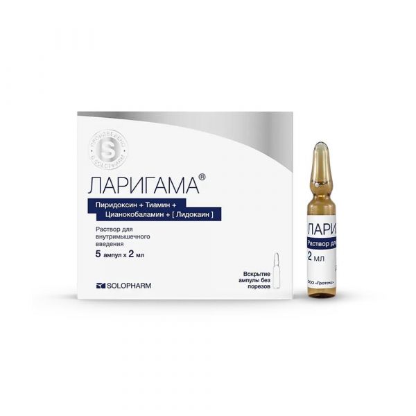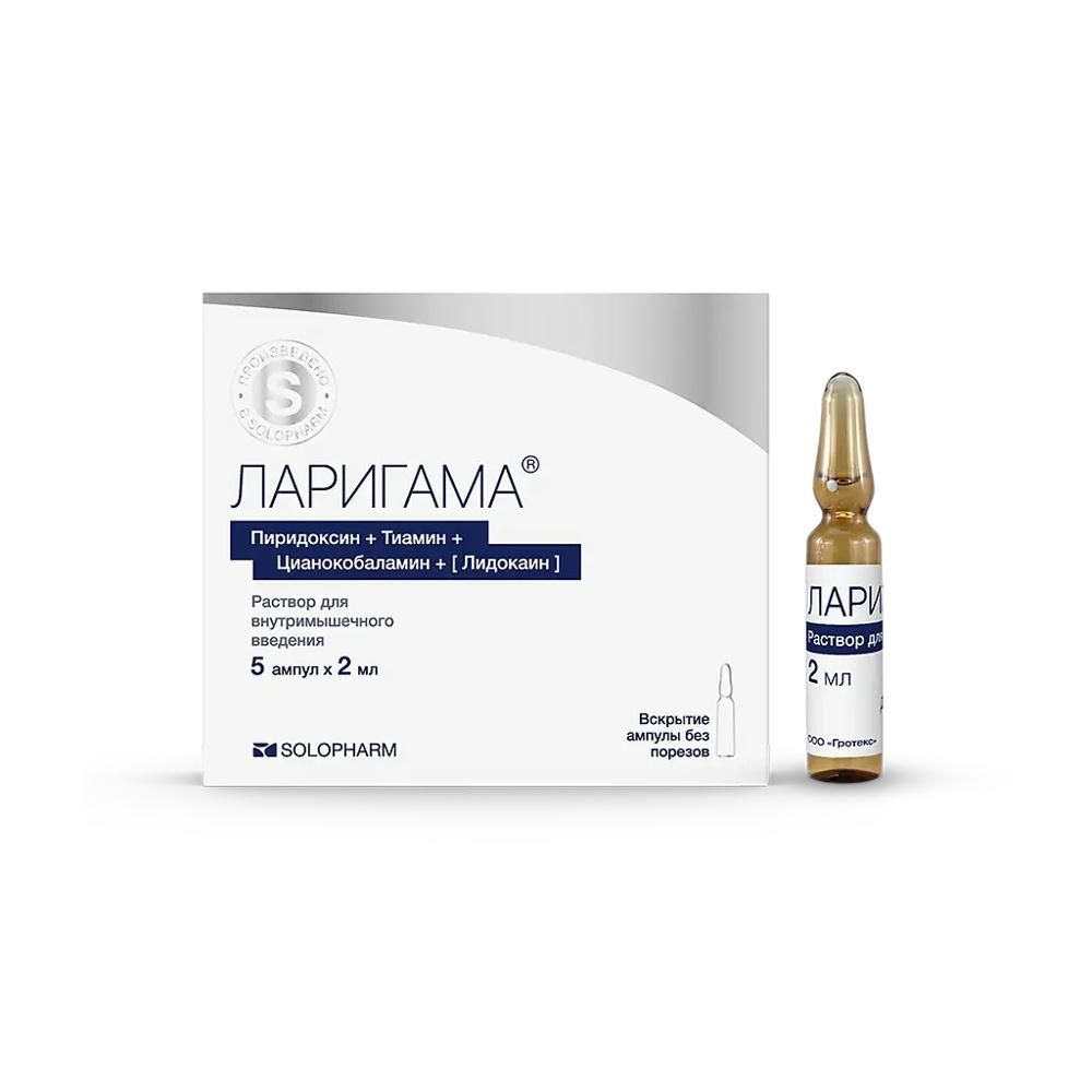 Купить Ларигама 2мл р-р д/ин.в/м. №5 амп. можно в аптеках Екатеринбурга, забронировать на сайте и в приложении