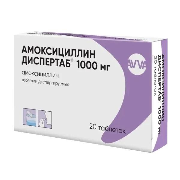 Амоксициллин диспертаб 1000мг таб.дисп. №20