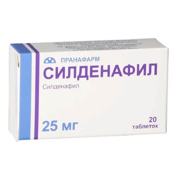 Силденафил 25мг таб.п/об.пл. №20 по цене от 313.76 руб в Екатеринбурге, купить Силденафил 25мг таб.п/об.пл. №20 (Пранафарм ооо) в аптеке Фармленд, инструкция по применению, отзывы