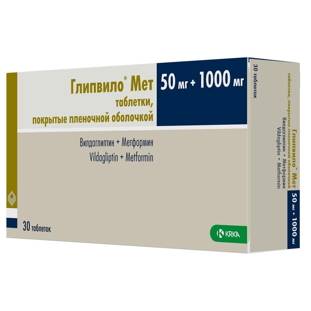 Глипвило мет 50мг+1000мг таб.п/об.пл. №30 Krka d.d. в Екатеринбурге