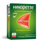 Применение препарата Никоретте® сопровождается меньшим риском, чем курение., Пластырь трансдермальный Никоретте® следует удалять перед проведением МРТ (магнитно-резонансная томография) во избежание получения ожогов., Опасность для маленьких детей, Дозы никотина, которые легко переносят взрослые курильщики и курильщики-подростки, могут вызвать тяжелую интоксикацию у детей, что может привести к смерти. Важно не оставлять без присмотра препараты, содержащие никотин, поскольку это может повлечь неправильное их применение и проглатывание детьми (см. раздел «Передозировка»)., Формирование зависимости, Может развиться зависимость от препарата, но она является менее опасной для здоровья и более легко преодолимой, чем зависимость от курения., Отказ от курения, Полициклические ароматические углеводороды, содержащиеся в табачном дыме, индуцируют метаболизм препаратов, метаболизируемых изоферментом CYP1A2 (и, возможно, CYP1A1). Прекращение курения может вызывать замедление метаболизма и, как следствие, увеличение концентрации этих препаратов в крови. Это имеет потенциальное клиническое значение для препаратов с узким терапевтическим индексом, например, теофиллина, такрина, клозапина и ропинирола. , После прекращения курения в плазме могут также увеличиться концентрации других препаратов, которые частично метаболизируются изоферментом CYP1A2, таких как имипрамин, оланзапин, кломипрамин и флувоксамин, хотя данные, подтверждающие эту гипотезу, отсутствуют, и возможное клиническое значение подобного эффекта не известно. , Ограниченные данные свидетельствуют о том, что курение может индуцировать метаболизм флекаинида и пентазоцина., После использования пластырь следует сложить клейкой стороной внутрь и утилизировать в недоступном для детей месте., Предупреждения и меры предосторожности при комбинированной терапии пластыря трансдермального Никоретте® с резинками жевательными/таблетками подъязычными/спреем для местного применения аналогичны предупреждениям и мерам предосторожности при применении каждого из препаратов по отдельности., Если лекарственное средство пришло в негодность или истек срок годности – не выбрасывайте его в сточные воды или на улицу! Поместите лекарственное средство в пакет и положите в мусорный контейнер. Эти меры помогут защитить окружающую среду!