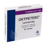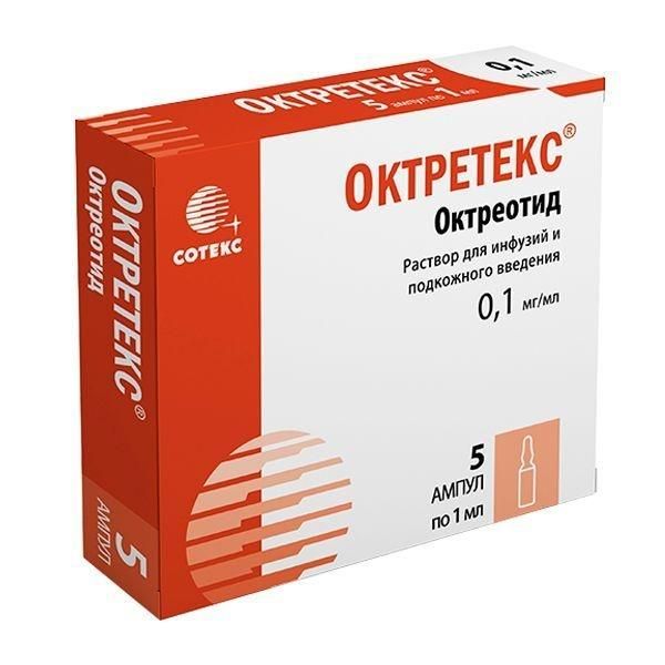 Октретекс 0,1мг/мл 1мл р-р д/инф. ин.п/к №5 амп. (Сотекс фармфирма зао) - цены в Екатеринбурге, купить Октретекс 0,1мг/мл 1мл р-р д/инф. ин.п/к №5 амп. в аптеке Фармленд, инструкция по применению, отзывы