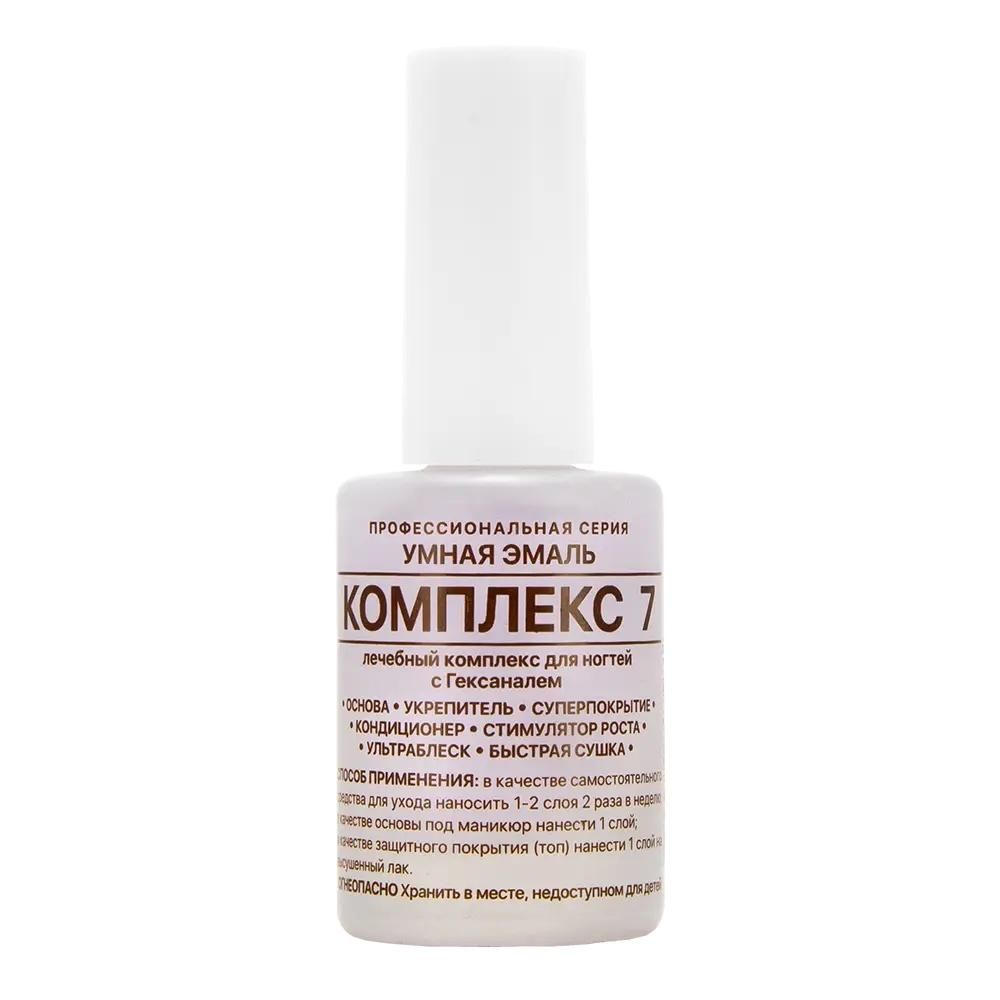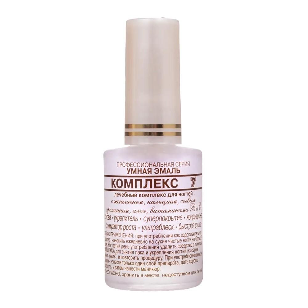 Для всестороннего лечебного воздействия на ваши ногти отлично подходит оздоровляющий комплекс 7 умная эмаль. Этот состав незаменим для всех видов ногтей, если появляются проблемы с ростом и развитием ногтевой пластины. Уникальная формула многосторонней направленности была создана после скрупулезных экспериментов.