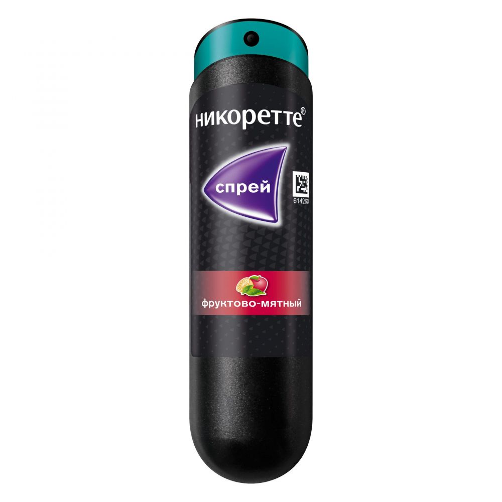 Для нанесения на слизистую оболочку полости рта. Пациент должен сделать все возможное, чтобы окончательно бросить курить при лечении спреем Никоретте®. Взрослые старше 18 лет Спрей Никоретте® следует применять в тот момент, когда возникает непреодолимое желание закурить. После подготовки спрея к использованию (см. Инструкцию ниже) поднести наконечник спрея как можно ближе к открытому рту. Нажать на дозатор сверху, высвободив таким образом 1 дозу препарата в полость рта; следует избегать попадания спрея на губы. Чтобы исключить попадание вещества в дыхательные пути, в момент нажатия на дозатор не следует совершать вдох. Для достижения наилучших результатов не следует сглатывать слюну в течение нескольких секунд после впрыскивания Во время использования спрея прием пищи и жидкости не рекомендуется. При появлении симптомов передозировки (см. раздел "Передозировка") применение препарата необходимо немедленно прекратить. Полный отказ от курения Спрей Никоретте® следует использовать во всех случаях возникновения тяги к курению или для недопущения тяги в ситуациях, которые могут ее провоцировать. Пациенты, желающие или способные отказаться от курения немедленно, должны сразу заменить выкуривание сигарет спреем Никоретте® и, как только представится возможность, снизить количество впрыскиваний до их полного прекращения. При полном отказе от курения сделать 1 или 2 впрыскивания в период времени, когда пациент обычно выкуривал сигарету, а также в случае появления тяги к курению. Если после однократного впрыскивания тяга к курению в течение нескольких минут не снижается, следует произвести второе впрыскивание. Если требуются 2 дозы, последующее применение спрея может состоять из 2 последовательных впрыскиваний. Каждый час разрешается принимать не более 4 дозированных впрыскиваний спрея. Не следует впрыскивать более 2 доз спрея одномоментно или применять более 64 доз/сут (или 4 дозы в час в течение 16 ч). Каждый флакон содержит не менее 150 доз. Средний курс применения спрея в указанной дозе – 6 недель. Затем следует начать снижение количества впрыскиваний таким образом, чтобы к концу 9-й недели количество доз составляло половину от среднего количества доз в сутки, получаемых в первые 6 недель, а в течение 12-й недели – не более 4 доз/сут. Когда суточная доза снизится до 2–4 впрыскиваний, применение спрея следует прекратить. После окончания терапии для предотвращения возврата к курению пациенты могут применять спрей Никоретте® при непреодолимом желании курить. В таких ситуациях можно сделать 1 впрыскивание, а в случае, если после однократного впрыскивания тяга к курению в течение нескольких минут не снижается, следует произвести второе впрыскивание. При этом не следует превышать 4 дозированных впрыскиваний в сутки. Регулярное применение спрея более 6 мес обычно не рекомендуется, однако некоторым пациентам может потребоваться более длительная терапия, чтобы не возобновить курение. Сокращение количества выкуриваемых сигарет Пациентам, желающим снизить количество выкуриваемых сигарет, следует применять спрей по потребности между эпизодами курения в целях увеличения промежутков времени между курением и с целью как можно большего снижения курения. Как только чувствуется готовность, пациент должен нацелиться на полный отказ о