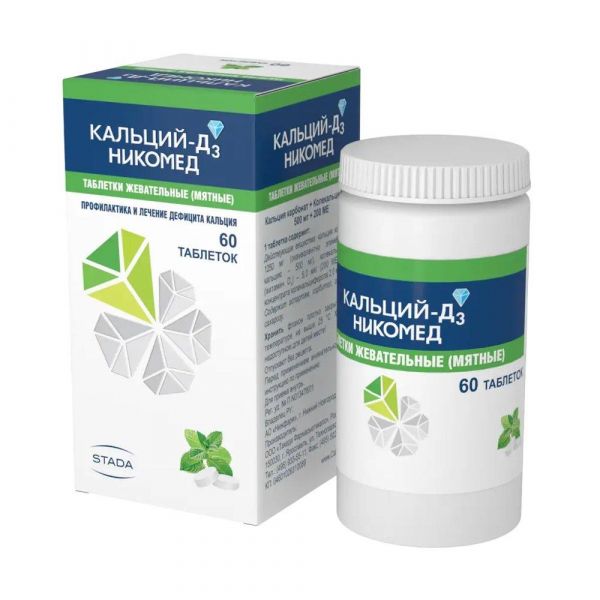Купить Кальций-д3 никомед 500мг таб.жев. №60 мята можно в аптеках Екатеринбурга, забронировать на сайте и в приложении