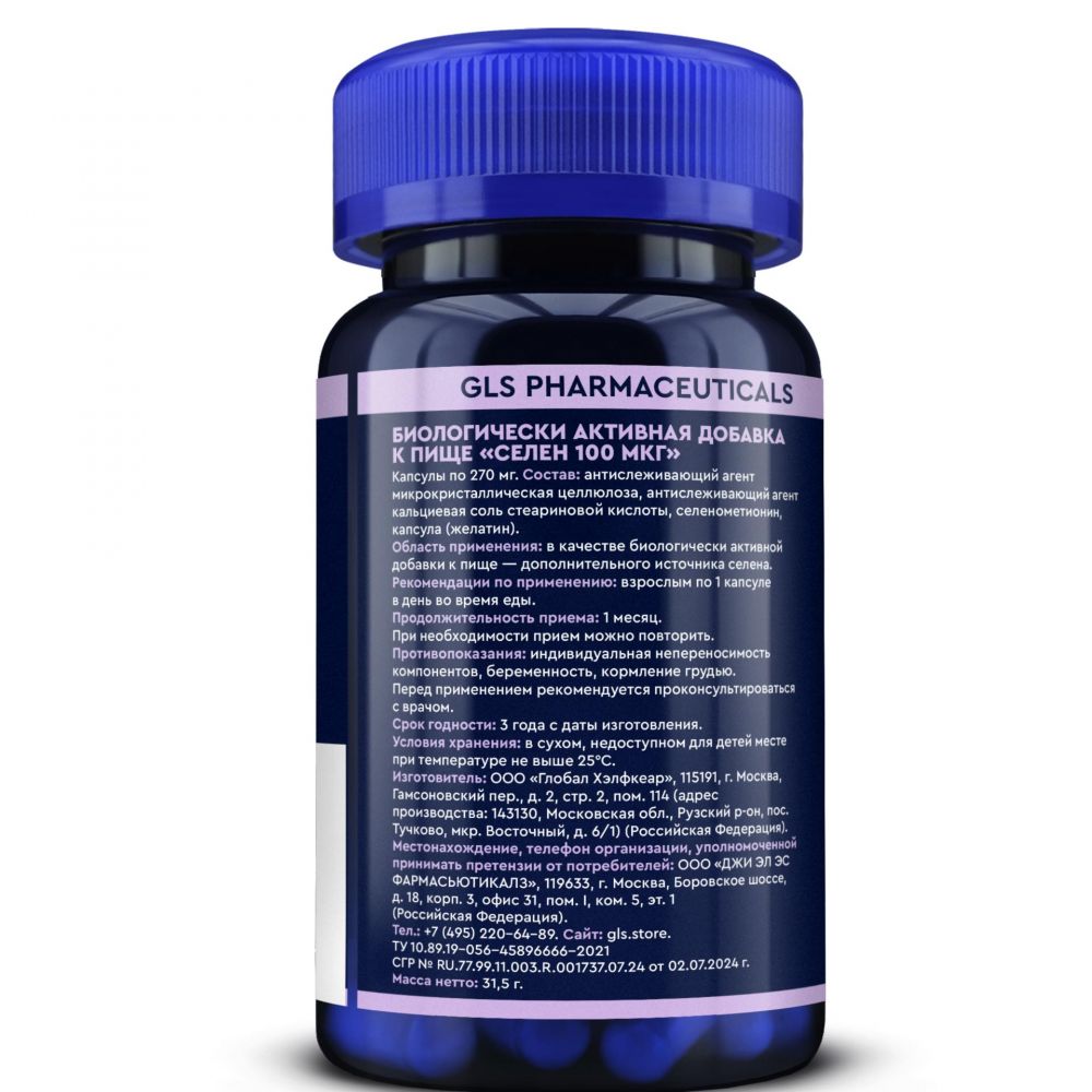 Gls селен 100мкг капс. №90 pharm по цене от 728.00 руб в Екатеринбурге, купить Gls селен 100мкг капс. №90 pharm (Глобал хэлфкеар ооо) в аптеке Фармленд, инструкция по применению, отзывы