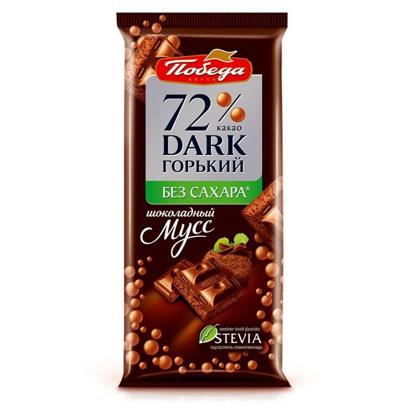 Победа шоколад горьк.пористый 65г шок. мусс без сахара