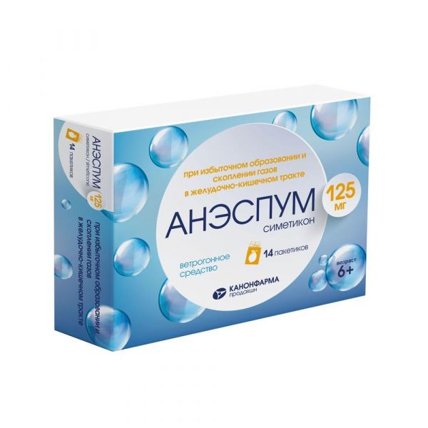 Анэспум 125мг 1100мг гран. №14 пак. (Канонфарма продакшн зао) - цены в Екатеринбурге, купить Анэспум 125мг 1100мг гран. №14 пак. в аптеке Фармленд, инструкция по применению, отзывы