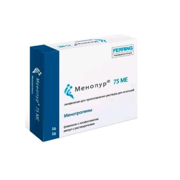 Менопур 75ме лиоф.д/р-ра д/ин.в/м. №10 фл. +раств.амп (Ferring gmbh) - цены в Екатеринбурге, купить Менопур 75ме лиоф.д/р-ра д/ин.в/м. №10 фл. +раств.амп в аптеке Фармленд, инструкция по применению, отзывы