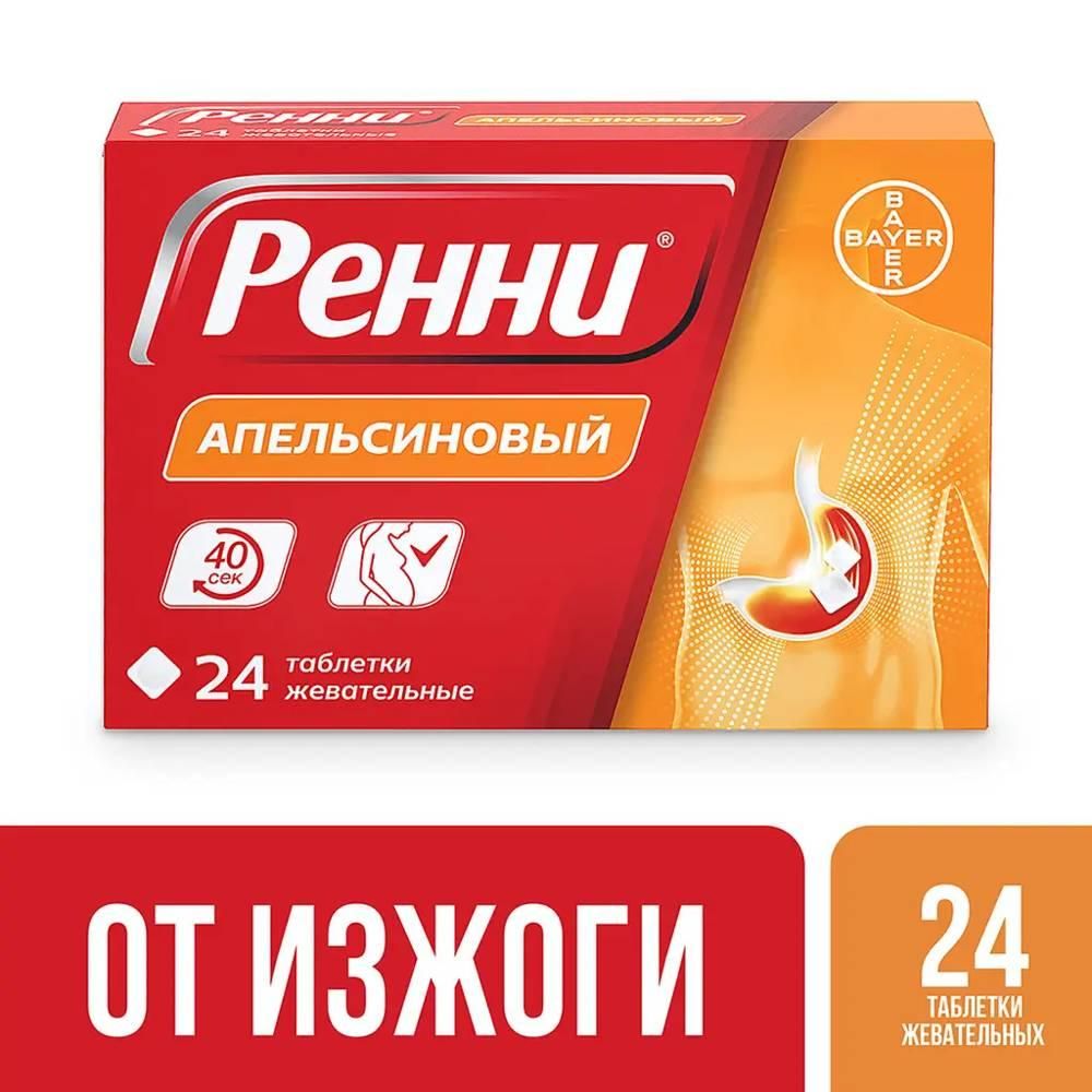 Купить Ренни таб.жев. №24 апельсин можно в аптеках Екатеринбурга, забронировать на сайте и в приложении