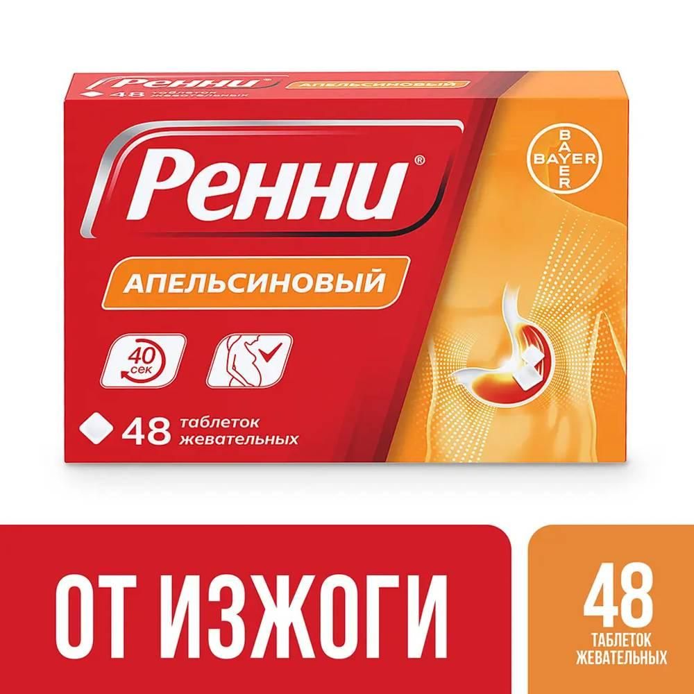 Купить Ренни таб.жев. №48 апельсин можно в аптеках Екатеринбурга, забронировать на сайте и в приложении