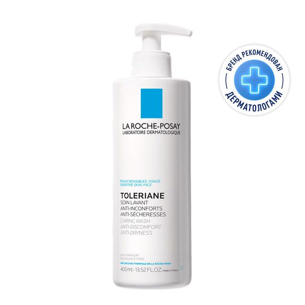 Очищающий гель для умывания TOLERIANE предназначен для ухода за чувствительной кожей. Активная очищающая формула содержит 3 успокаивающих ингредиента – Ниацинамид, Пантенол и Термальную воду LA ROCHE-POSAY. Средство обогащено Церамидами, которые способствуют поддержанию естественного защитного барьера для сохранения влаги в коже. Бренд входит в дивизион активной косметики международной Группы LʼOréal: La Roche-Posay (Ля Рош Позе), CeraVe (Цераве) и др.