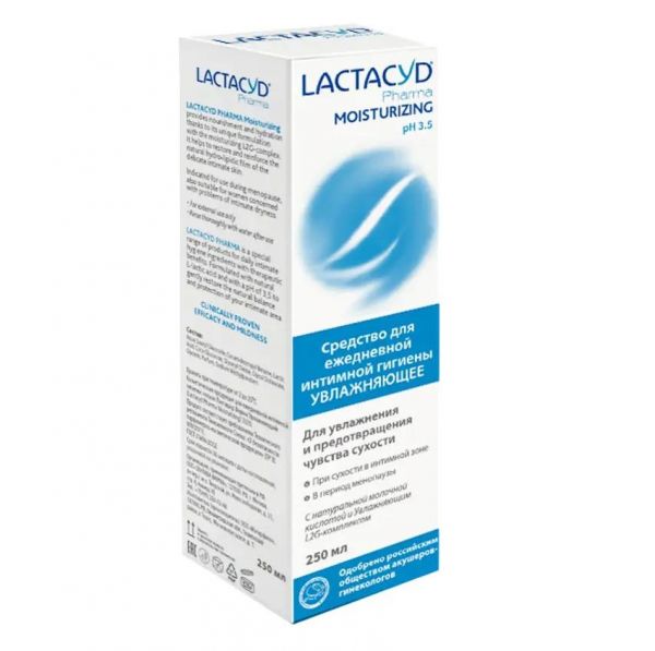 Обеспечивает длительное чувство полноценного увлажнения и избавляет от ощущения дискомфорта в интимной зоне., LACTACYD PHARMA MOISTURIZING - на 24% больше увлажнения!