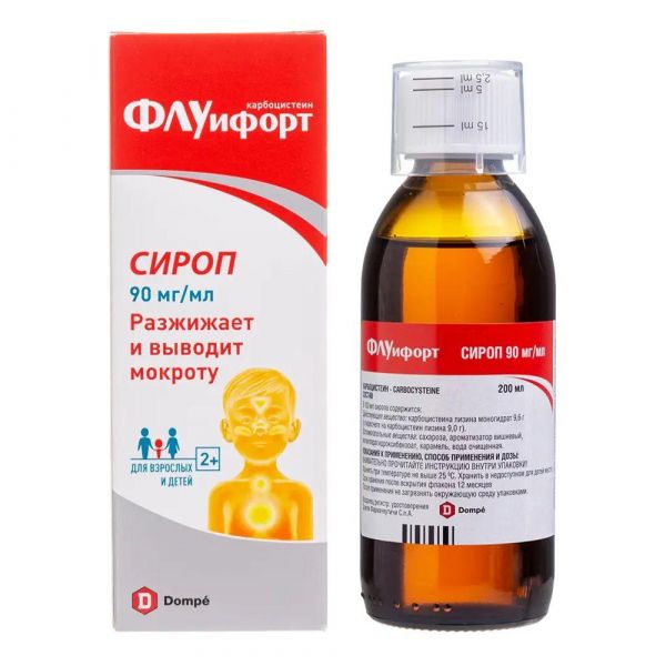 Флуифорт 90мг/мл 200мл сироп №1 фл.стак.мерн. Dompe farmaceutici s.p.a. в Екатеринбурге