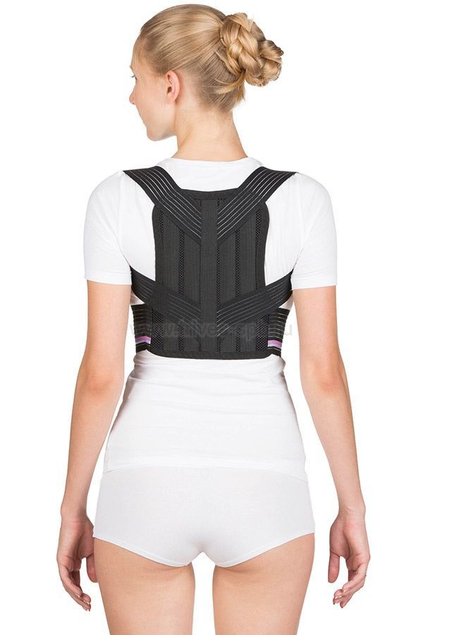 «спинка» из эластичного текстильного материала FORTIS S-Tex, не препятствующего отведению влаги и кожному дыханию на задней поверхности реклинатора 4 пластиковых ребра жесткости эластичные ленты на торсовой части реклинатора фиксируют изделие в области грудного отдела позвоночника эластичные ленты с застежками «Велкро» способствуют разведению плечевого пояса цвета: бежевый черный