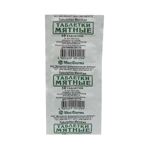Мятные таб. №10 Московская фармацевтическая фабрика зао_2 в Екатеринбурге