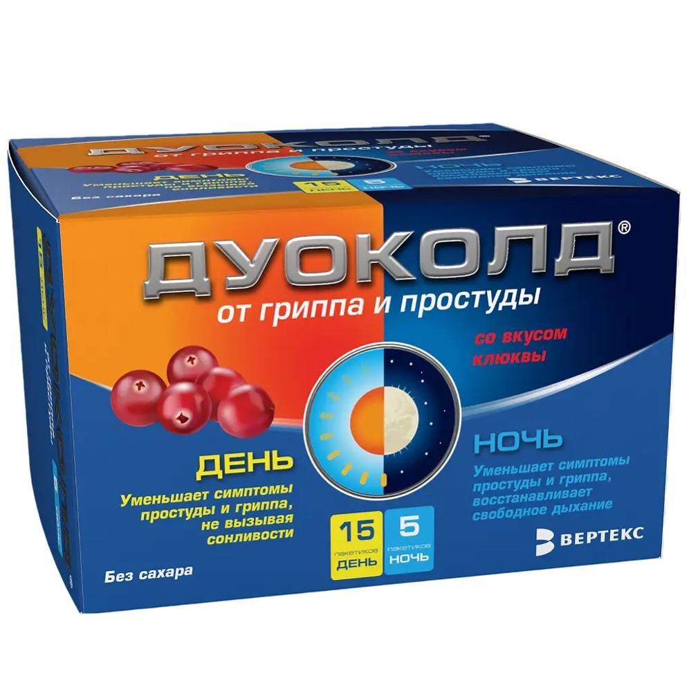 Дуоколд пор.д/р-ра д/пр.внутр. день пак.№15/ ночь пак.№5 клюква по цене от 915.60 руб в Екатеринбурге, купить Дуоколд пор.д/р-ра д/пр.внутр. день пак.№15/ ночь пак.№5 клюква (Вертекс ао) в аптеке Фармленд, инструкция по применению, отзывы