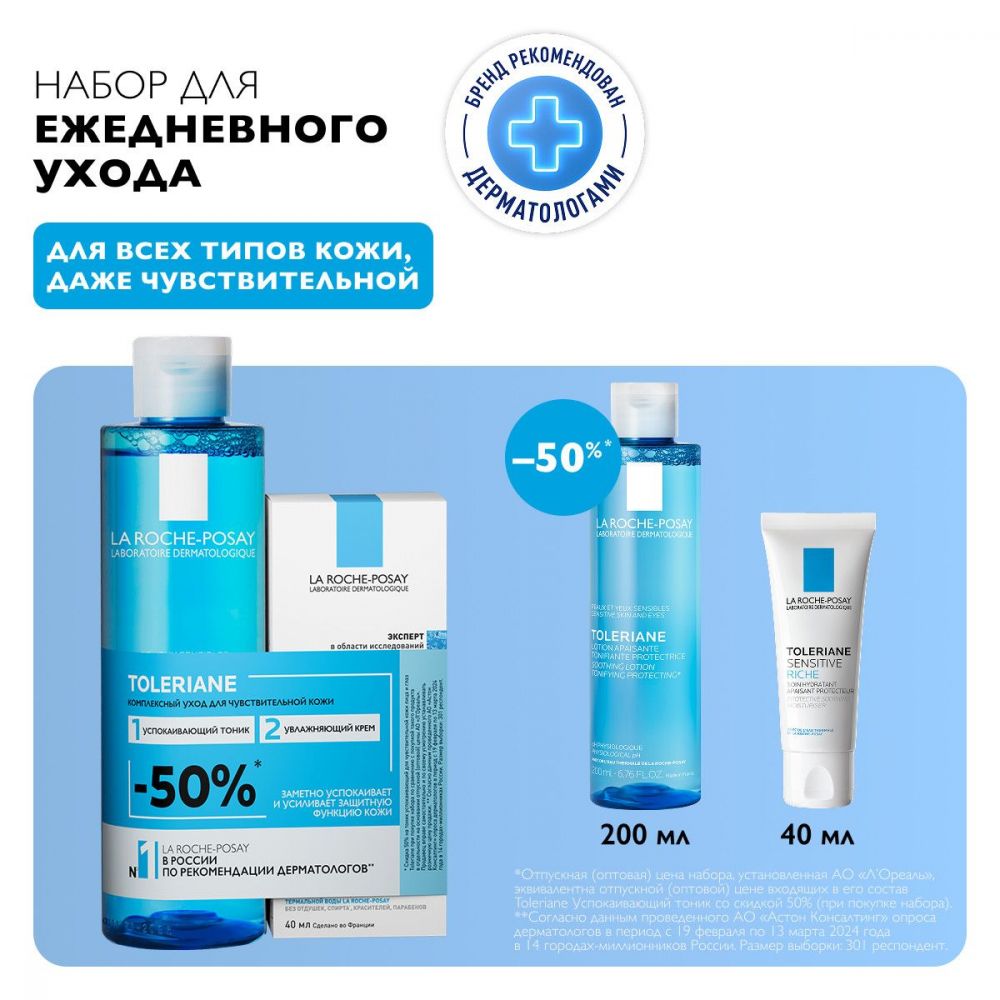Перед применением La Roche-Posay (Ля рош-позе) толеран сенситив 40мл + тоник 200мл рекомендуется изучить инструкцию.